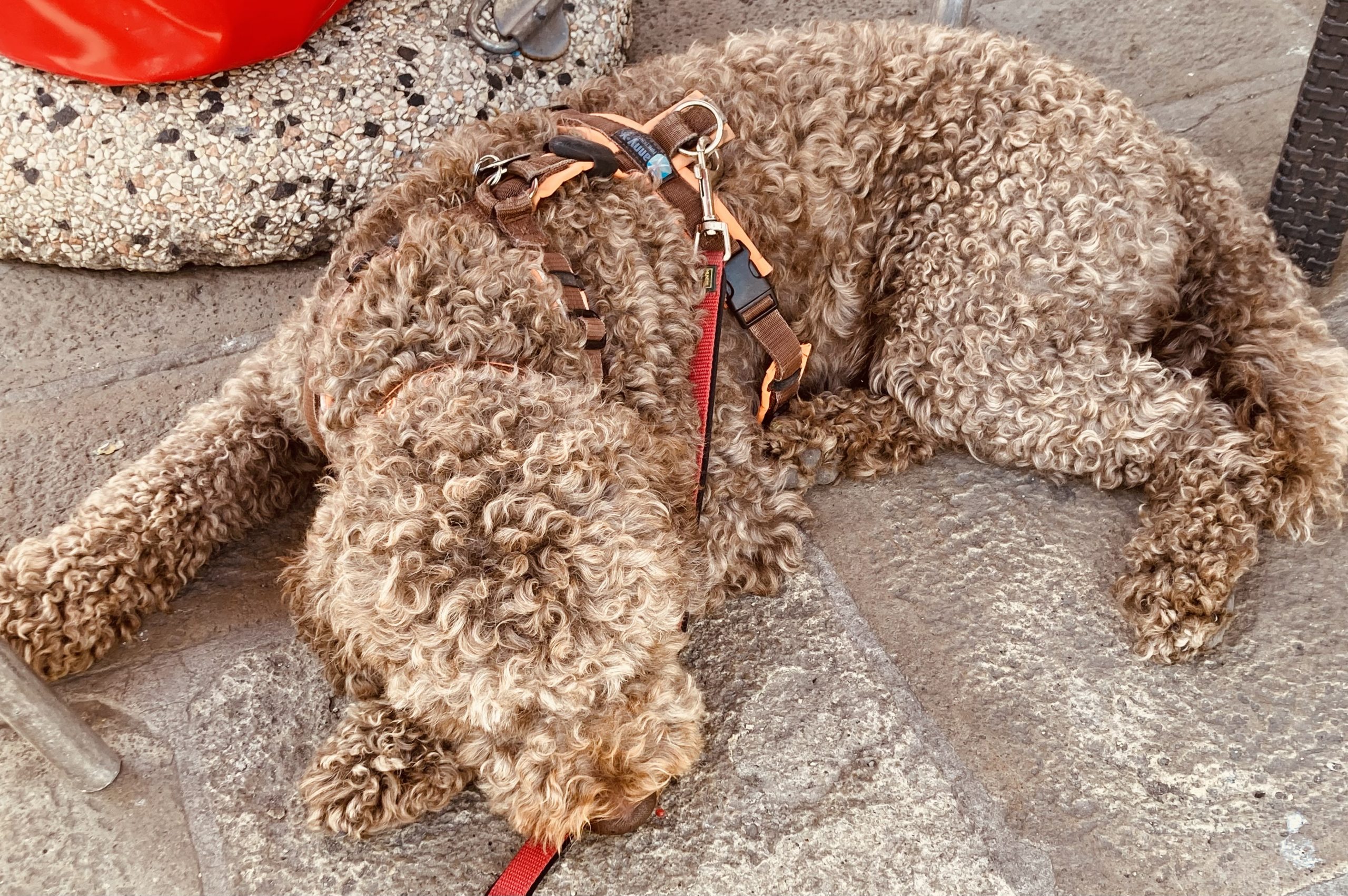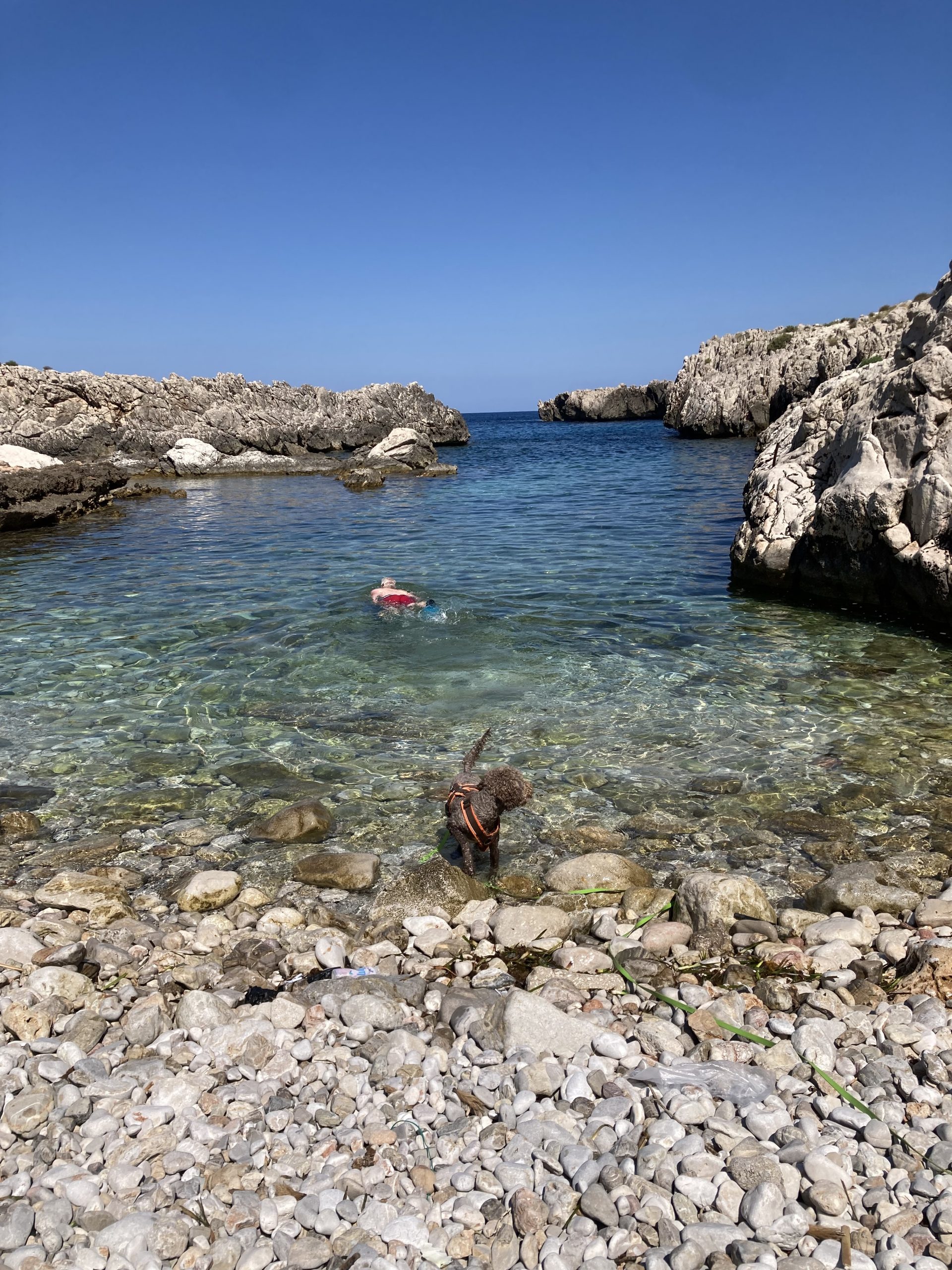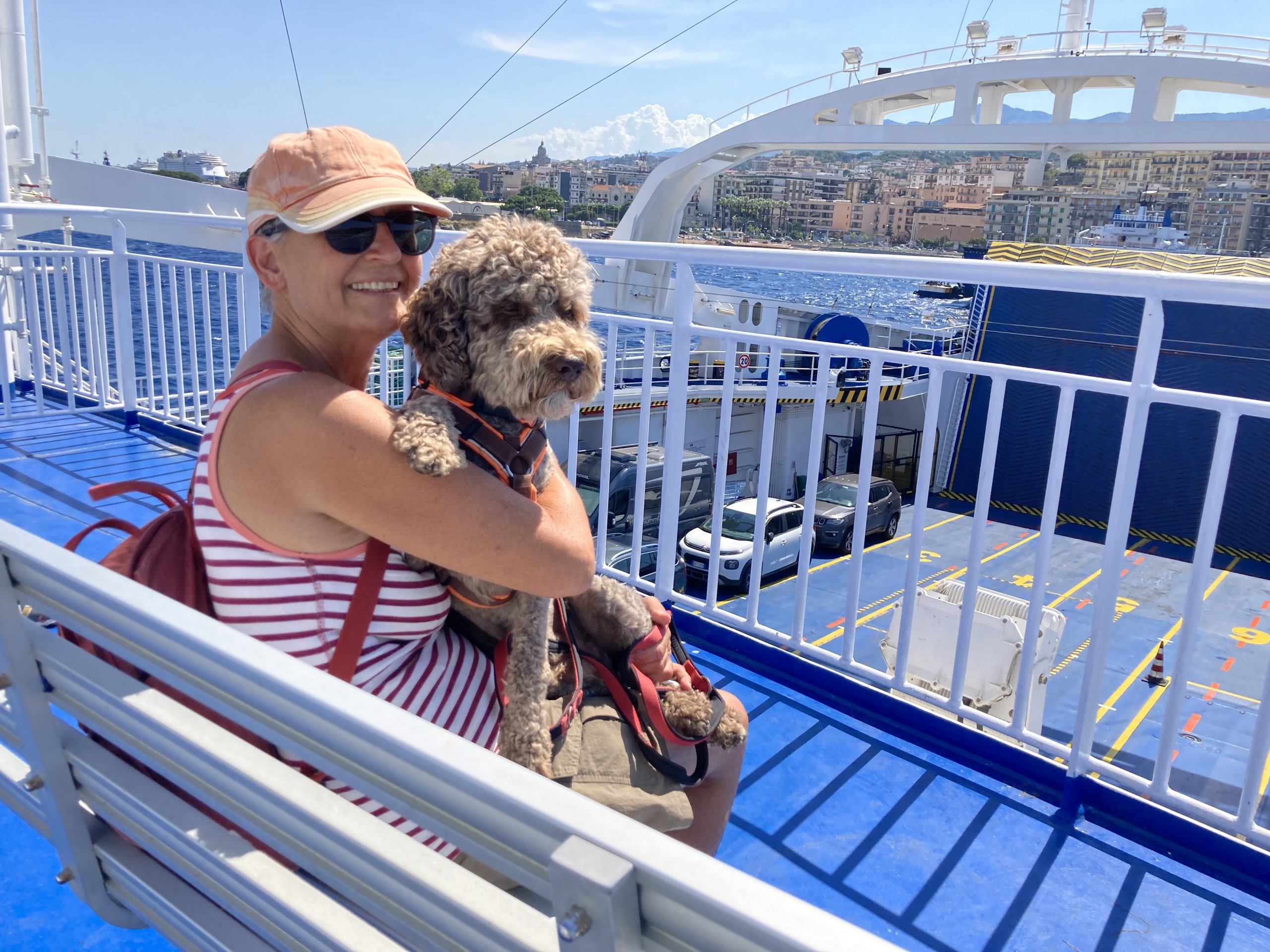 Fast immer mit Hund unterwegs.Fahrradfahren auf dem Deich.Gehts uns gut…😍WanderpauseFreilaufende Hunde in den AbruzzenSie sagten, das ist eine normale Portion…😂San Vito do CaboAuf derFähre zum Festland